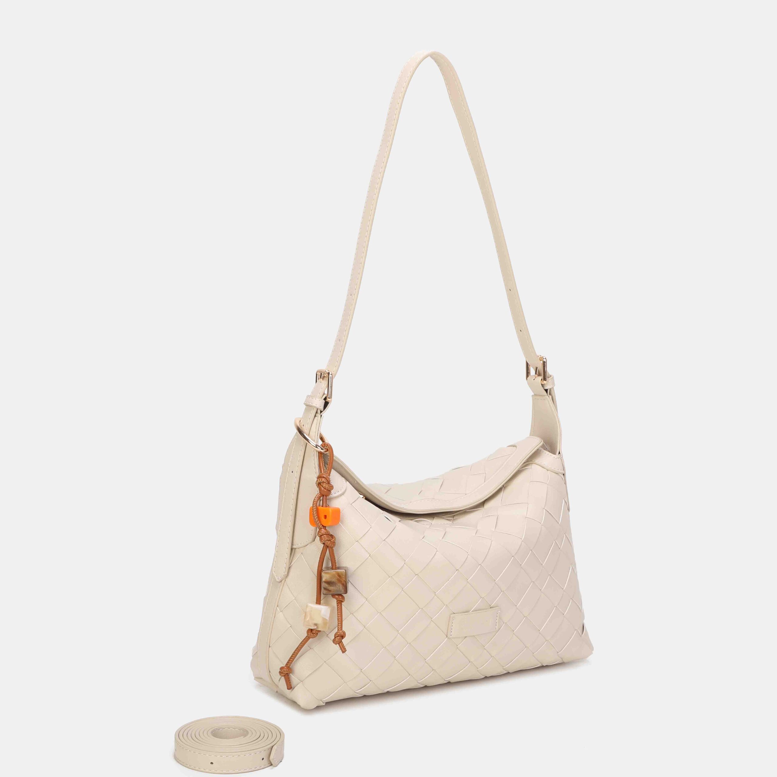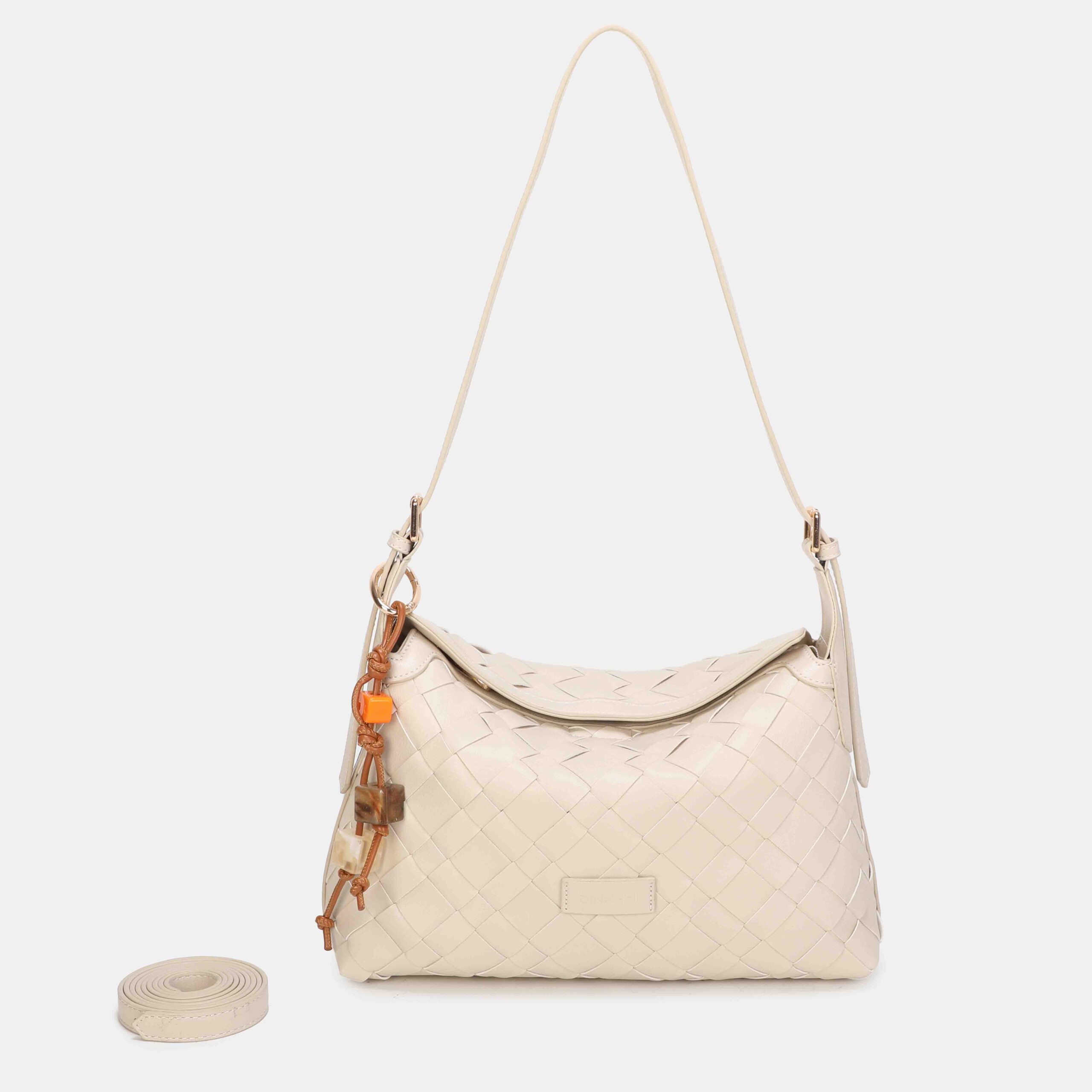 Bolso hombro Alba confeccionado en pu trenzado de alta calidad . Disponible en 3 colores. Tiene 3 compartimentos en su interior, uno de ellos con cremallera, aportando así mayor seguridad. Además tiene un asa en su interior para poder llevarlo como bandolera, 2 en 1.