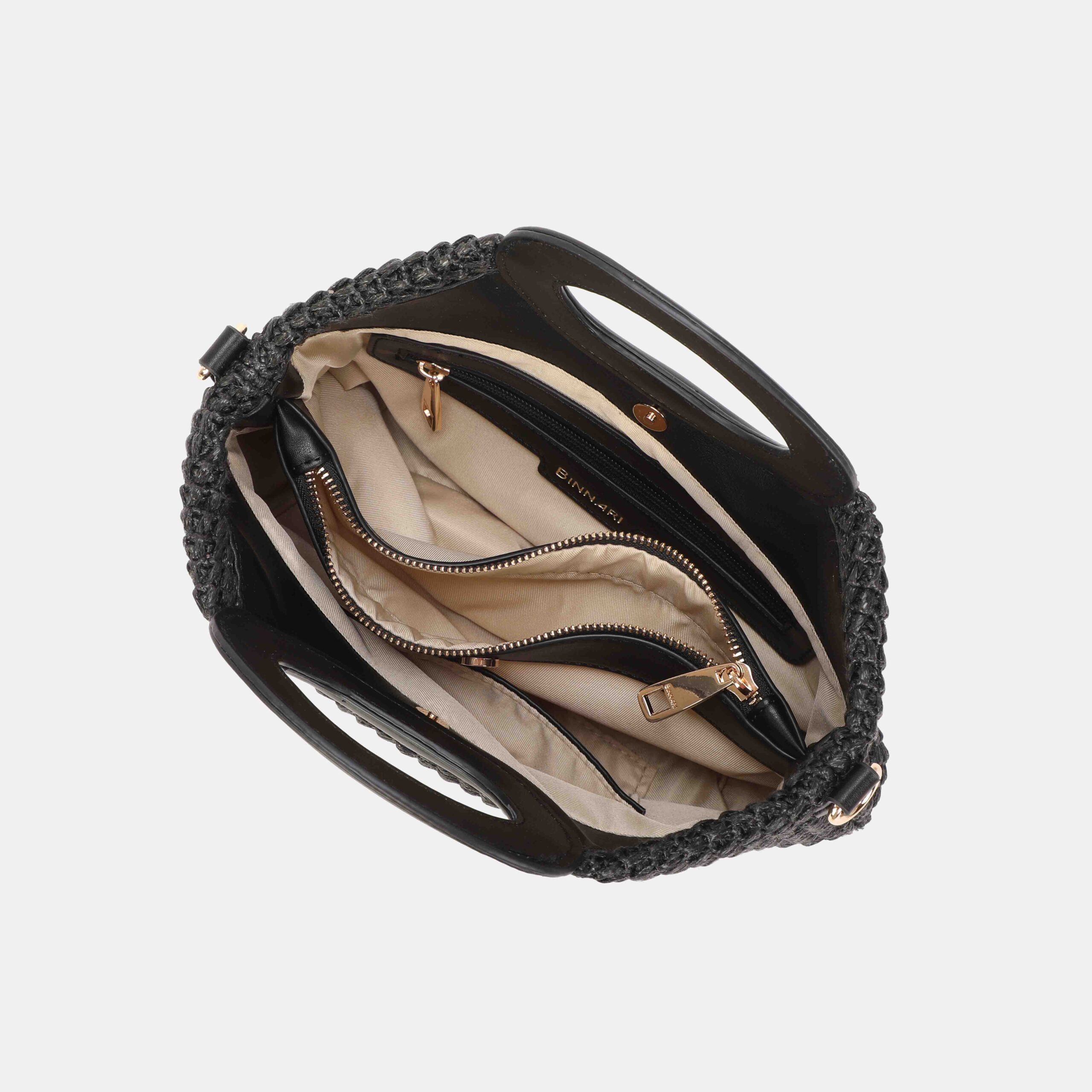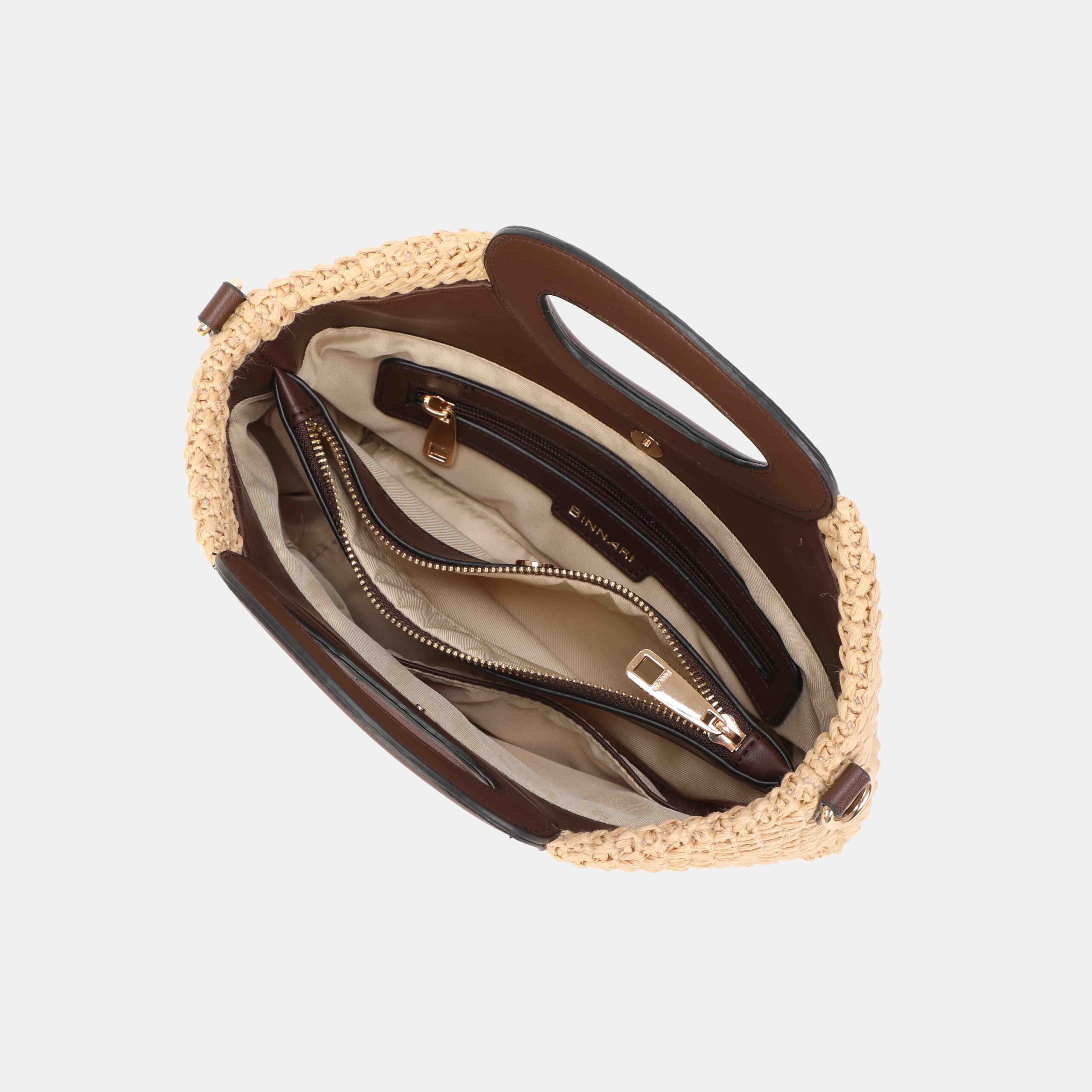 - Confeccionado en rafia textil de alta calidad y detalles en pu